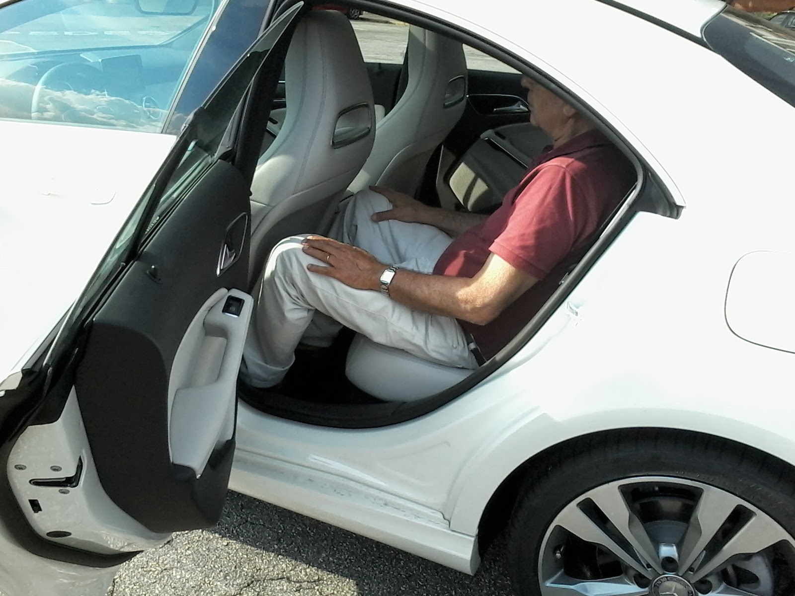O CLA tem o mesmo espaço interno do Classe A e dois passageiros acomodam-se bem no banco traseiro, com bom espaço para pernas. Embora haja largura para três, o próprio desenho do bancos traseiro 2+1 mostra que só dois ocupantes são esperados ali. O porta-malas acomoda 470 litros e as dobradiças tradicionais "pescoço de ganso" não interferem com a bagagem por correrem em guias próprias. Há soluções tipicamente Mercedes, como o limpador de pára-brisa do lado direito contar com uma miniarticulação pantográfica para otimizar a varredura.